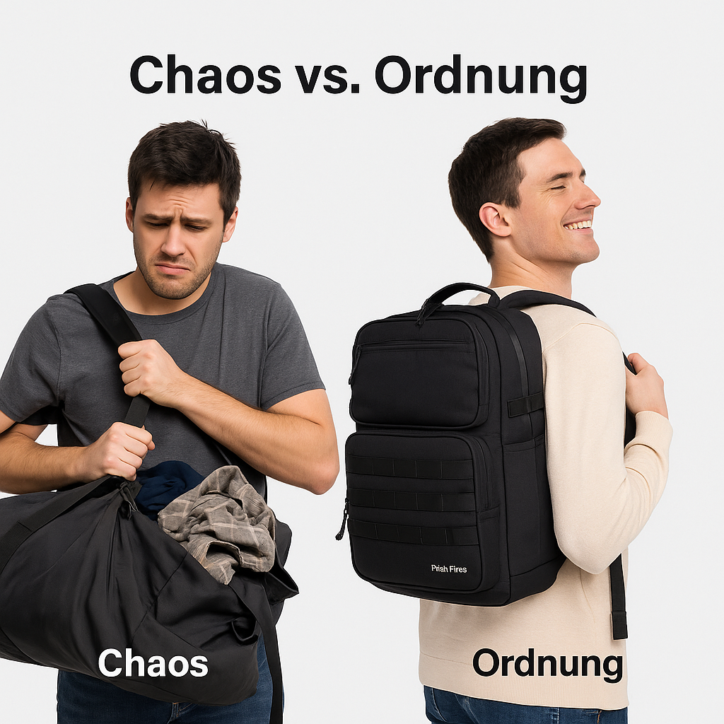 Links schwer und unpraktisch, rechts leicht und organisiert: Mit dem modularen Rucksack-System von Pean Feas hast du endlich alles im Griff – clever, flexibel und genau so, wie du es brauchst.